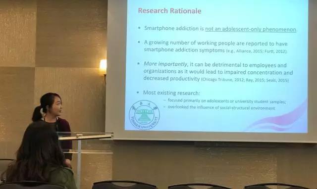 黎藜老师的论文题目为“Examining Factors Influencing Smartphone Addiction Among Organizational Workers in China”(《中国在职工作人员智能手机成瘾的影响因素分析》),这也是云南大学首篇入选国际传播学会年会的论文。