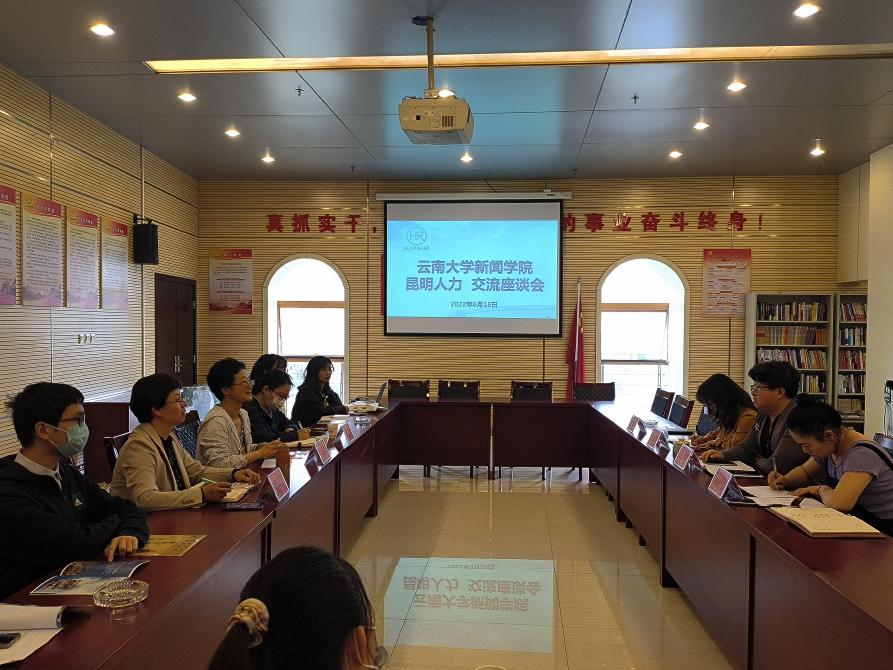 6月16日下午,我院党委书记窦志梅老师、副书记曹云雯老师、学工办副主任袁晨玲老师以及7名应届毕业生到昆明市人力资源服务有限公司开展访企拓岗促就业活动。昆明市人力资源有限公司的执行董事王奇、副董事彭文翠、业务副经理林晓雪、综合办主任黄艳琳与来访师生进行了交流。